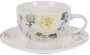 Tasse mit Untertasse 9x6 cm Blumen Design